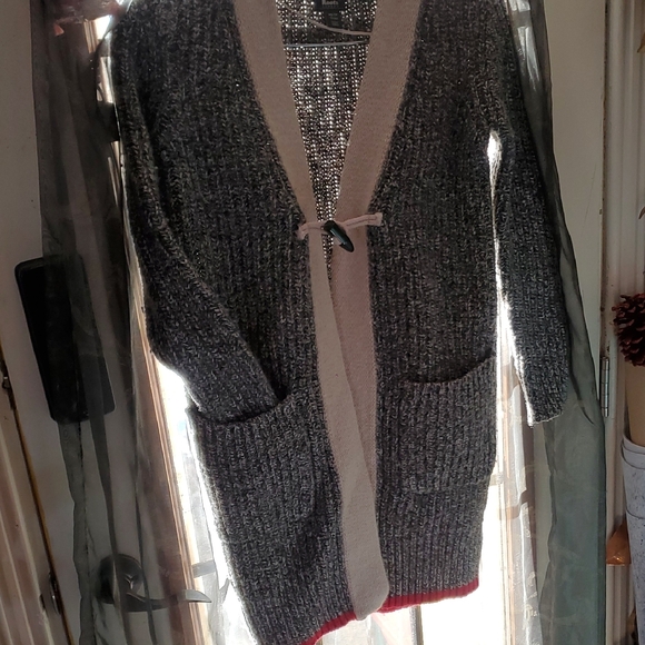 🍁🌲Cozy warm Roots cardigan thick weave wool blend. This is great to wrap yourself in on cooler days with the added length and warmth of wool. Extra toggle button attached. 😊