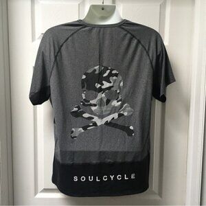 - SoulCycle original shirt with a huge skull camouflage logo on the back