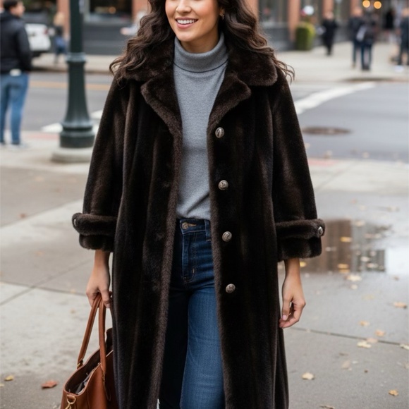 Rare Sterling Stall Luxury Faux Fur Long Coat Brown - Excellent Condition - Fits