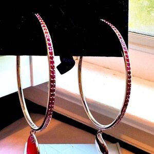 ✨Rare Stunning Vintage Swarovski Red Pave and Silver Crystal Large Hoop Earrings