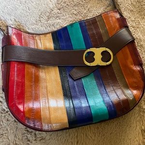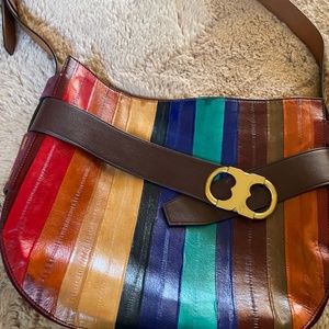 Rare Tory Burch multicolour eel stripe belted Gemini hobo shoulder bag