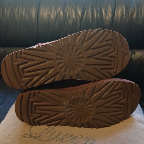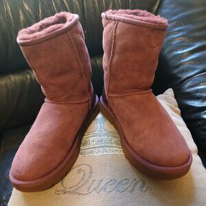 "Updating their most timeless silhouette for a standout statement, UGG added metallic heel accents to the iconic Classic Mini. Pre-treated to keep it looking better for longer, the Classic Short Metallic Boot is crafted with the famously soft sheepskin, signature UGGplush™ wool blend, and lightweight, flexible sole. Ultra-versatile, you can pair these beautiful Rich Bordeaux tone boots with everything from Saturday sweats to denim and a velvet top."