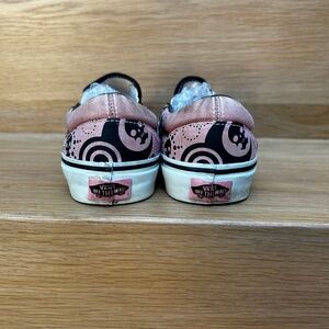 Gently used rare slip-on Vans with Tribal Skull Mono print in pink. Size W 7.5 M 6