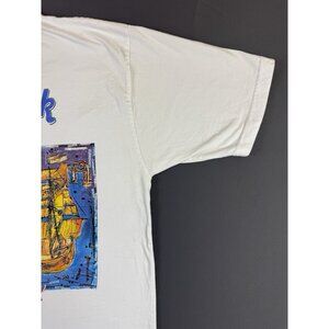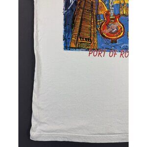 Rare Vintage 90s Hard Rock Cafe Port Of Rock Art Guitar White XL Shirt Music Tee