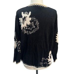 Rare! Vintage Black Floral Beaded Button Front Cotton Cardigan Sweater Size M