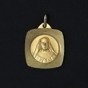 Add a meaningful piece of Canadian religious history to your collection or jewelry with this stunning gold-toned medal. Commemorating Mother Marie-Léonie Paradis, the founder of the Little Sisters of the Holy Family, this medal features a detailed relief portrait and is stamped "Italy" on the reverse.