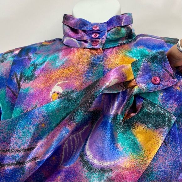 Rare Vintage Como Diffusion Satin Feel Button Down Blouse Arabian Nights
