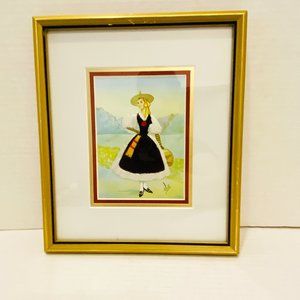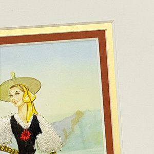 Rare Vintage Elsi Gumier Silk Embroidered Postcard 1960s Framed Glass