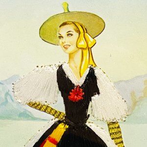 Rare Vintage Elsi Gumier Artist Silk Embroidered Postcard 1960s