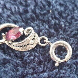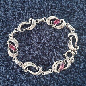 Rare Vintage Filigree Sterling Purple Rhinestone Crystal Art Nouveau Bracelet