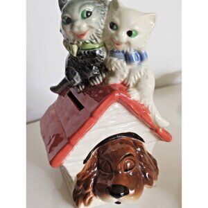Rare Vintage Goebel Hummel Naughty Cats/Sleeping Dog Coin Bank 6.5" Tall 1950's