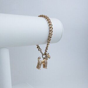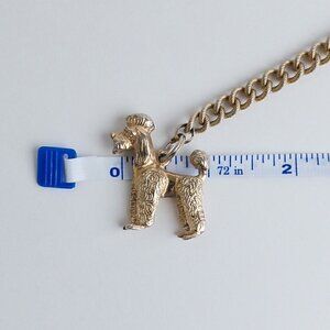 Vintage Napier Dog Pendant Charm Bracelet. The dog is carefully detailed to show the curl of his fur and expression of his face. The Napier mark is on the ring that holds the poodle charm. Pre-owned, with normal vintage wear consistent with age such as light surface scratches and plating loss, not noticeable when worn. Please refer to photos. Perfect gift for fur baby parents, dog lovers.
