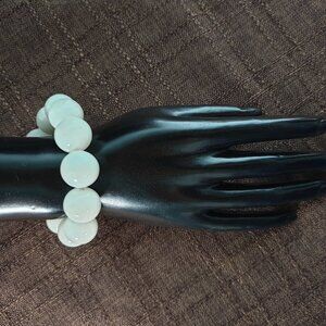 Rare Vintage Natural White Nephrite Jade Bead Bracelet – 20mm Beads, 107.12g