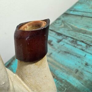 Rare Vintage Owl Teapot Stoneware w/Rattan Handle Wooden Lid