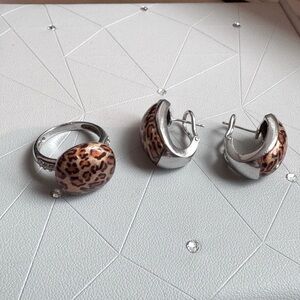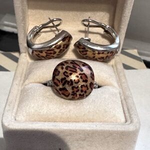 🐾 RARE Vintage Sterling Silver Panther Print Earrings & Ring Set – Bold, Wild, Unworn