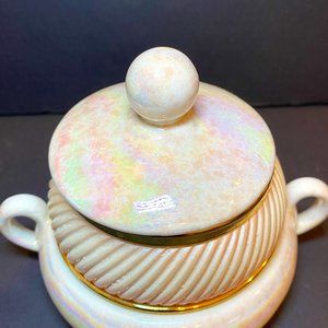 Rare Vintage Treasure Box dish Iridescent Pink and Gold Capodimonte Italy