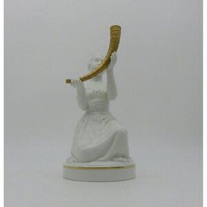 Very Rare Vintage White Royal Copenhagen Denmark Kristine Svendsdatter "Girl with the Golden Horn" Figurine No 12242 - Collectible Danish Porcelain Sculpture.