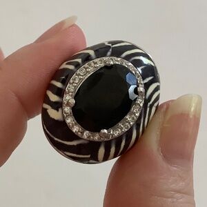 The Onyx stone is surrounded by smaller white stones making this ring sparkle.