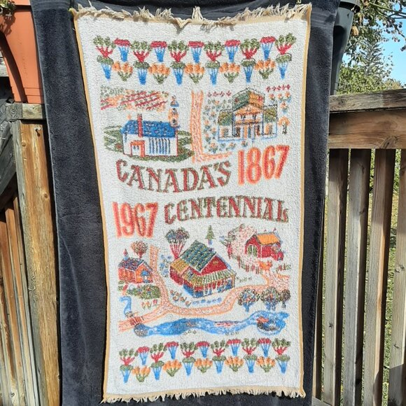 Rare Vtg 60's Cotton Bath Towel, Canada Centennial, 1867-1967 Canadiana 23"x40"