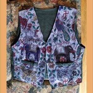 Rare, vintage 80s, vest embroidered animals, cotton, unisex M, L, XL, handmade