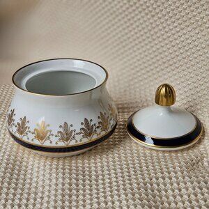 Rare vintage Weimar Porcelain Sugar Jar, German Real Cobalt Harmonie 50's