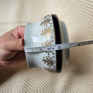 This is the real vintage piece from Weimar Porzellan Blankenhain Thuringia during 1950's-60's. Marked with heraldic shield and "Weimar porcelain made in GDR Echt Weimar Kobalt" on the bottom. It's in cobalt blue / ivory white background, gold rim and decoration, model "Harmonie". It's in top vintage condition, there are only minor signs of age and wear. Please see photo for more details on condition and the measurements.