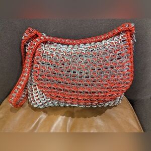 Rare vintage aluminum pop can tab crocheted purse large size capacity Silver/Red