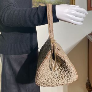 Rare leather treatment that resembles astrakhan, the curly fleece of young karakul lambs from central Asia. Very unique!