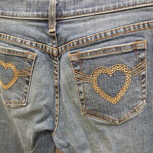 So cool Juicy Couture denim with embellished heart ❤️ back pockets and slight flare bottoms