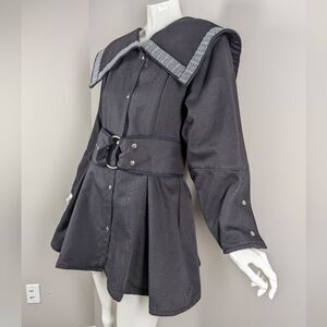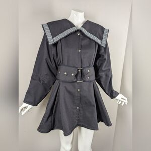 Rare Vintage PARA Style Denim Mini Coat Dress M Sailor Collar Belted 70s