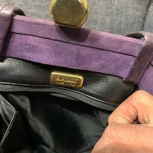 Rare Vintage Bally crossbody purse in amazing condition very minor wear inside and out please refer to the photos. There is purple, plum and black colour block with lightening bolt design. Very intricate design. The inside is super clean and Is leathered lined very unique. Gorgeous piece to add to any closet.