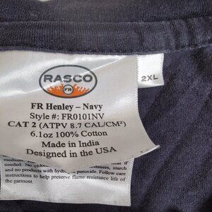 Rasco Flame Resistant FR Henley Navy Men'sLong Sleeve Shirt Chest Pocket, Size 2XL