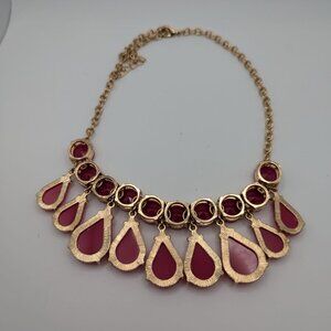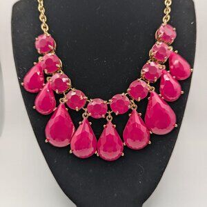 Raspberry Acrylic faced Bead Statement Necklace Gold Tone