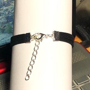 Glass dome Rasta Colors Peace Sign set in a 12mm bezel tray and on a black suede band with an adjustable chain from 6" - 8-1/2" in length.