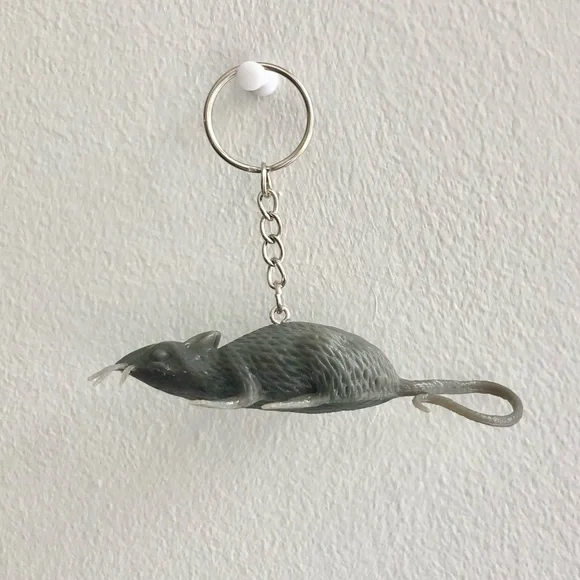Grey rat keychain handmade from an upcycled toy rubber rat.perfect for Halloween, or your everyday spooky rat vibes!