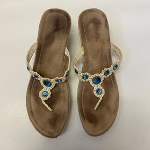 Rattan Open Back Stappy Turquoise Beaded Sandals