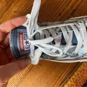 These shoes were handmade, the canvas has been printed on for a Harry Potter fan who appreciates subtlety. I didn’t wear them much, but they are beautiful works of art. Size 7 1/2. I hope you find them as beautiful as I do. Bought them for well over 200$. There are minor scuffs, but they remain a gorgeous pair of authentic converse.