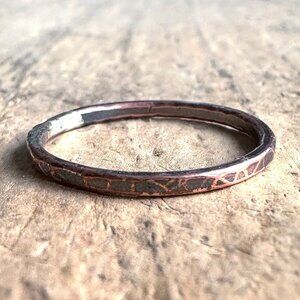Raw Copper Hammered Ring Band Oxidized Stacking Ring UNSEALED UNCOATED - Size 8