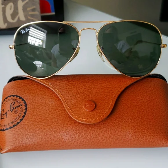 Ray-Ban aviator sunglasses, turtle lenses with gold metal frames. Very well taken care of, always kept in the case, no scratches or scuffs. Size 58 lenses.