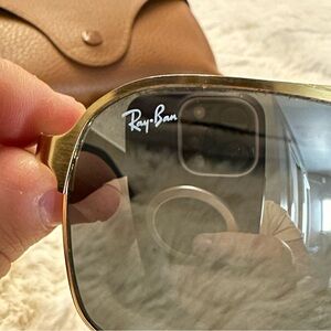 Ray-Ban RB3570 square sunglasses with sleek blue arms and gold accents. Comes with a soft case and dust cloth.