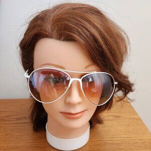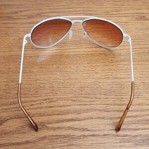 Stylish Ray-Ban aviator sunglasses. Silver frame with red-tinted lenses. Comes with a black case.