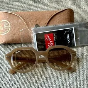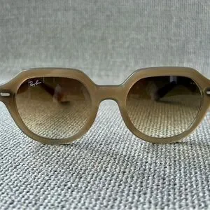 Ray-Ban Gina sunglasses in polished turtledove. The gradient lenses provide excellent sun protection while maintaining a fashionable look. Accompanied by a brown leather case, they are an essential accessory for sunny days.