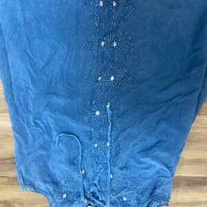 Chic blue skirt with elegant embroidery. Ideal for casual wear.