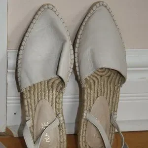 Leather cream coloured espadrilles with tie. Gorgeous and comfortable. Flats.