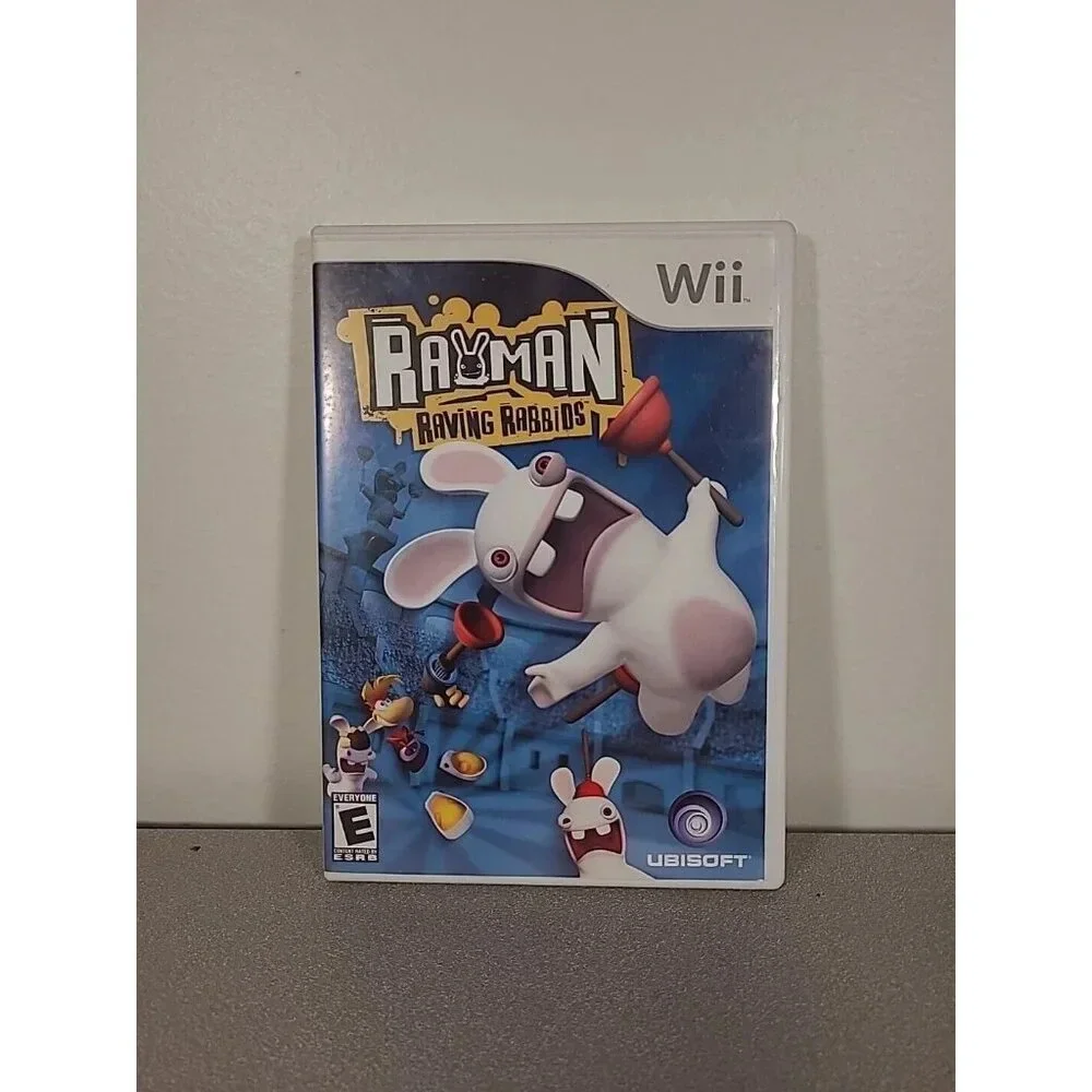 Rayman Raving Rabbids for Nintendo Wii is a complete edition game released in 2006 by Ubisoft. This mixed sports and action-adventure game is rated E for Everyone and is part of the popular Rayman video game series.