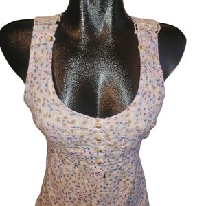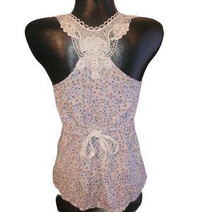 Razzle Dazzle Floral Lace Trim Racerback Tank Top S