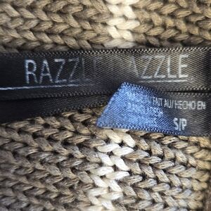 Razzle Dazzle Striped Olive and Coral Crocheted Sweater Size Small