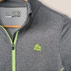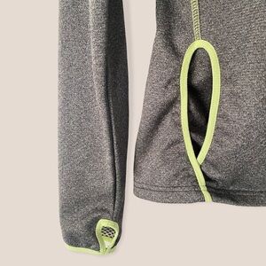 Lightweight and stretchy zip up athletic jacket. Brand and material stamp has faded. Great condition otherwise. Size S.