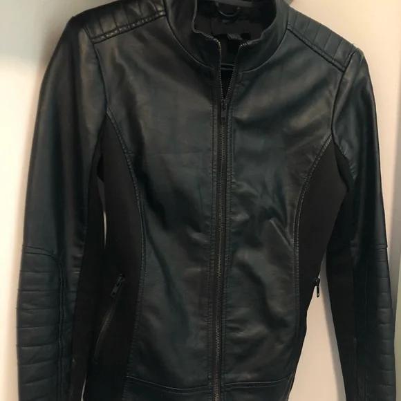 Faux leather jacket - fabric back - slim fit