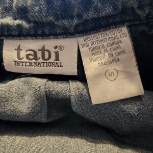 Tabi denim button up shirt with patch work fish on the back